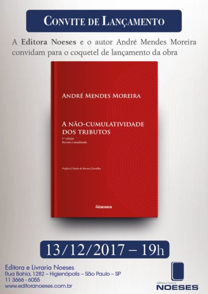 O sócio conselheiro do SCMD e Professor da UFMG André Mendes Moreira lançará, em 13 de dezembro próximo, a terceira edição revista e ampliada do livro “A Não-Cumulatividade dos Tributos”.