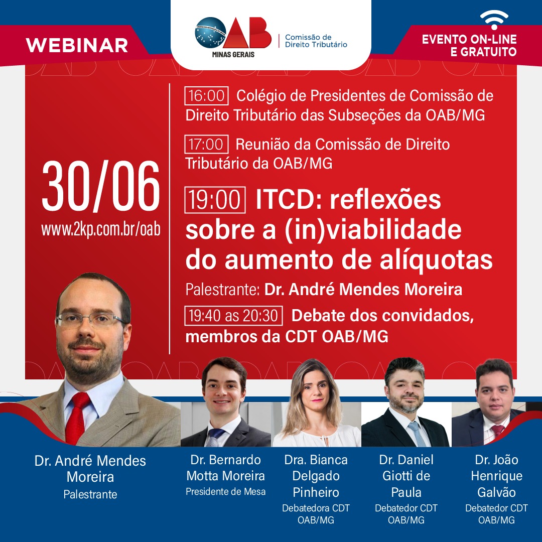 André Mendes Moreira em Webinar da OAB: ITCD: reflexões sobre a (in)viabilidade do aumento de alíquotas
