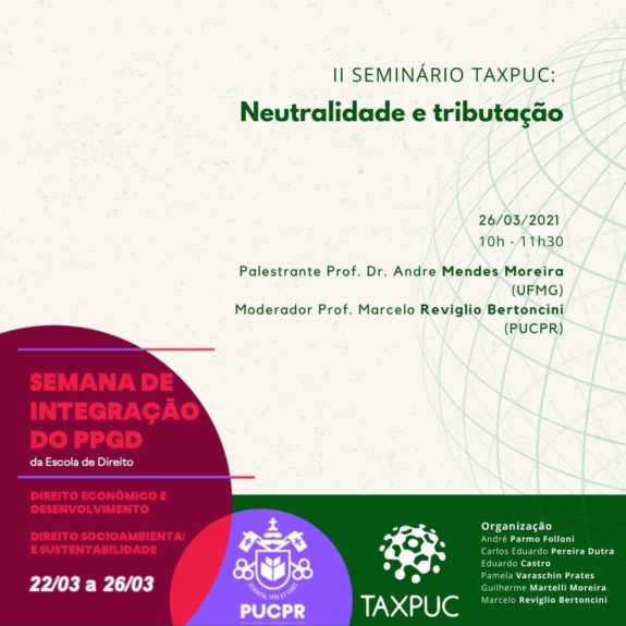 O II Seminário TAXPUC de Direito Tributário, que faz parte da Semana de Integração do Programa de Pós-Graduação em Direito (PPGD) da PUC-PR, contará com a presença do sócio-conselheiro do SCMD André Mendes Moreira.