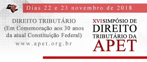 Promovido pela Associação Paulista de Estudos Tributários (Apet), o evento será realizado nos dias 22 e 23 de novembro, no Mercure Hotel, em São Paulo (Rua São Carlos do Pinhal, 87, Bela Vista).