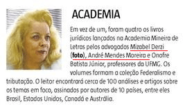 Em vez de um, foram quatro os livros jurídicos lançados na Academia Mineira de Letras pelos advogados Mizabel Derzi, André Mendes Moreira e Onofre Batista Júnior, professores da UFMG. Os volumes formam a coleção Federalismo e tributação. O leitor encontrará cerca de 100 análises e artigos sobre os temas em foco, assinados por autores de 10 países, entre eles Brasil, Estados Unidos, Canadá e Austrália.