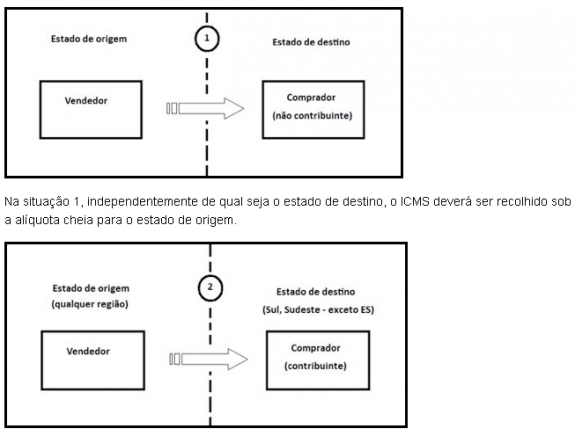 Como a alíquota interestadual varia de acordo com a região do país, tem-se as seguintes situações possíveis: