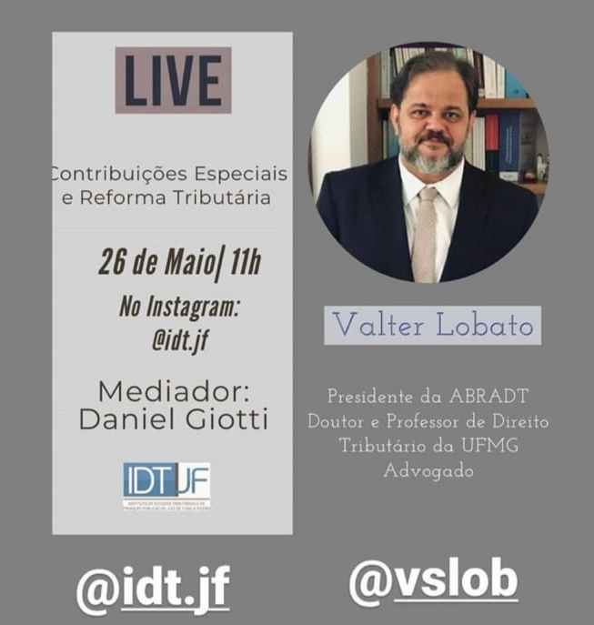 Contribuições especiais e reforma tributária: Valter Lobato é o convidado da live do IDT-JF