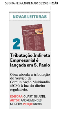 O Diário Indústria Comércio & Serviços (DCI) destacou o lançamento de dois livros, o primeiro, segunda edição, revista, atualizada e ampliada de “A tributação dos Serviços de Comunicação”, de autoria do sócio André Mendes Moreira, e o segundo com participação de André Mendes: “Tributação Indireta Empresarial – Indústria, Comércio e Serviços”.