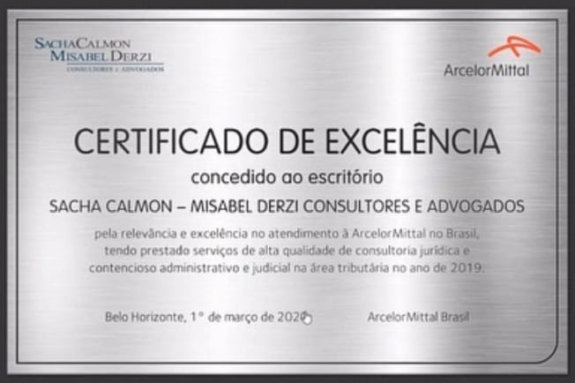 O Sacha Calmon – Misabel Derzi Consultores e Advogados (SCMD) recebeu, mais uma vez, certificado de excelência da ArcelorMittal Brasil.