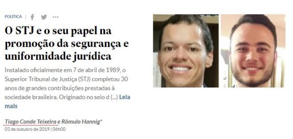 O portal do jornal O Estado de São Paulo publicou, no blog de Fausto Macedo, artigo do sócio do SCMD Tiago Conde, em conjunto com Rômulo Hannig, intitulado ‘O STJ e o seu papel na promoção da segurança e uniformidade jurídica’.