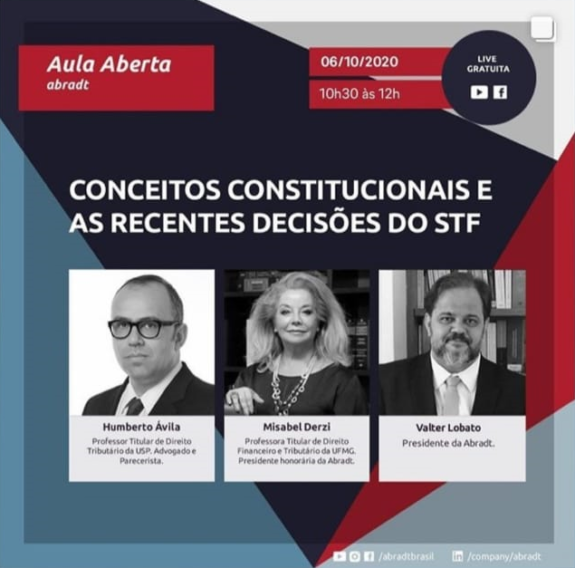 Os professores Misabel Derzi e Valter Lobato estarão na aula aberta da Associação Brasileira de Direito Tributário (Abradt), com o tema “Conceitos Constitucionais e as Recentes Decisões do STF”.