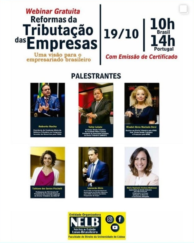 Promovido pelo Núcleo de Estudos Luso-Brasileiro (NELB), da Faculdade de Direito da Universidade de Lisboa, o evento será realizado a partir das 10h do dia 19 de outubro, nos seguintes canais do NELB: