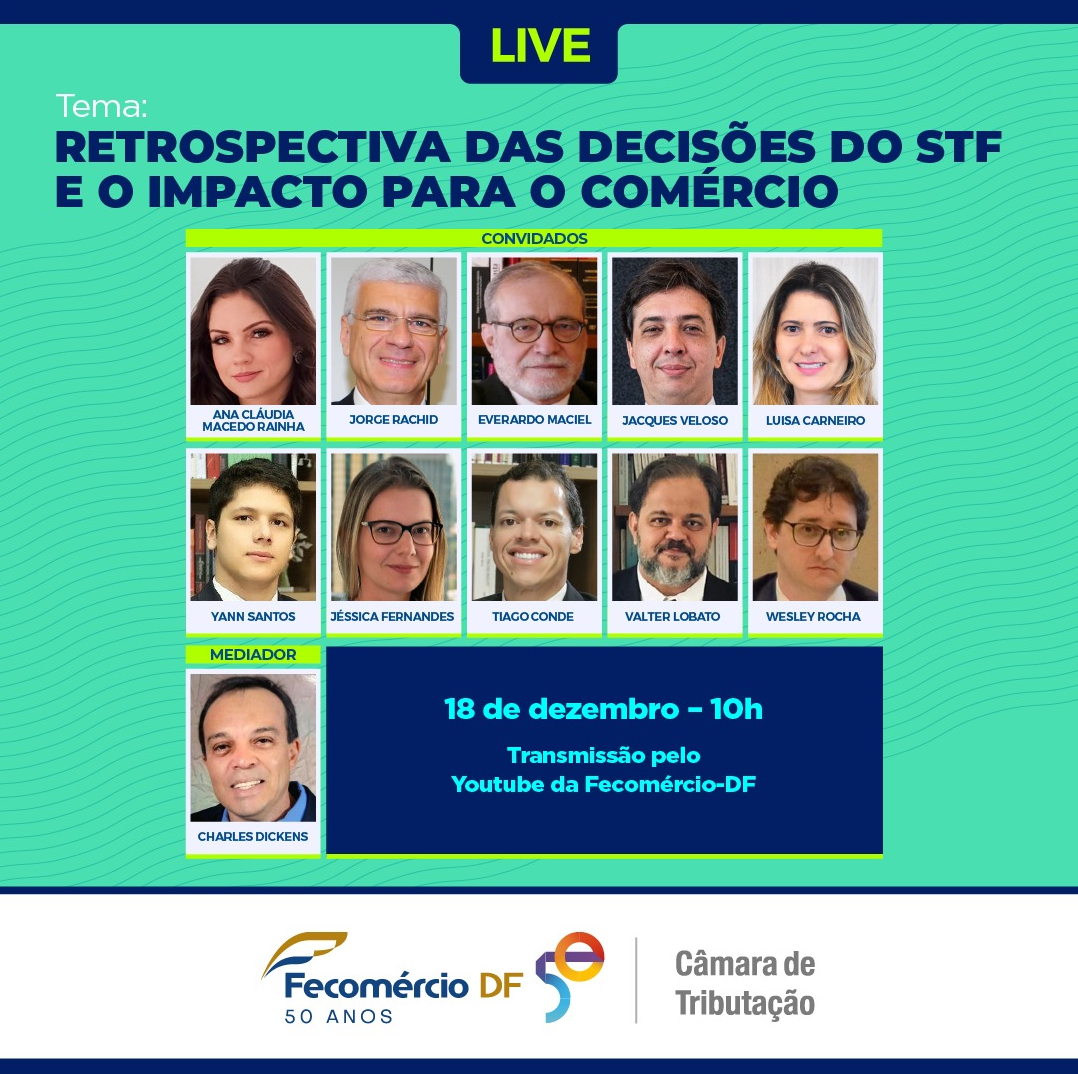 O Sacha Calmon – Misabel Derzi Consultores e Advogados terá três representantes na live ‘Retrospectiva das Decisões do STF e o Impacto para o Comércio’, promovida pela Fecomércio-DF.