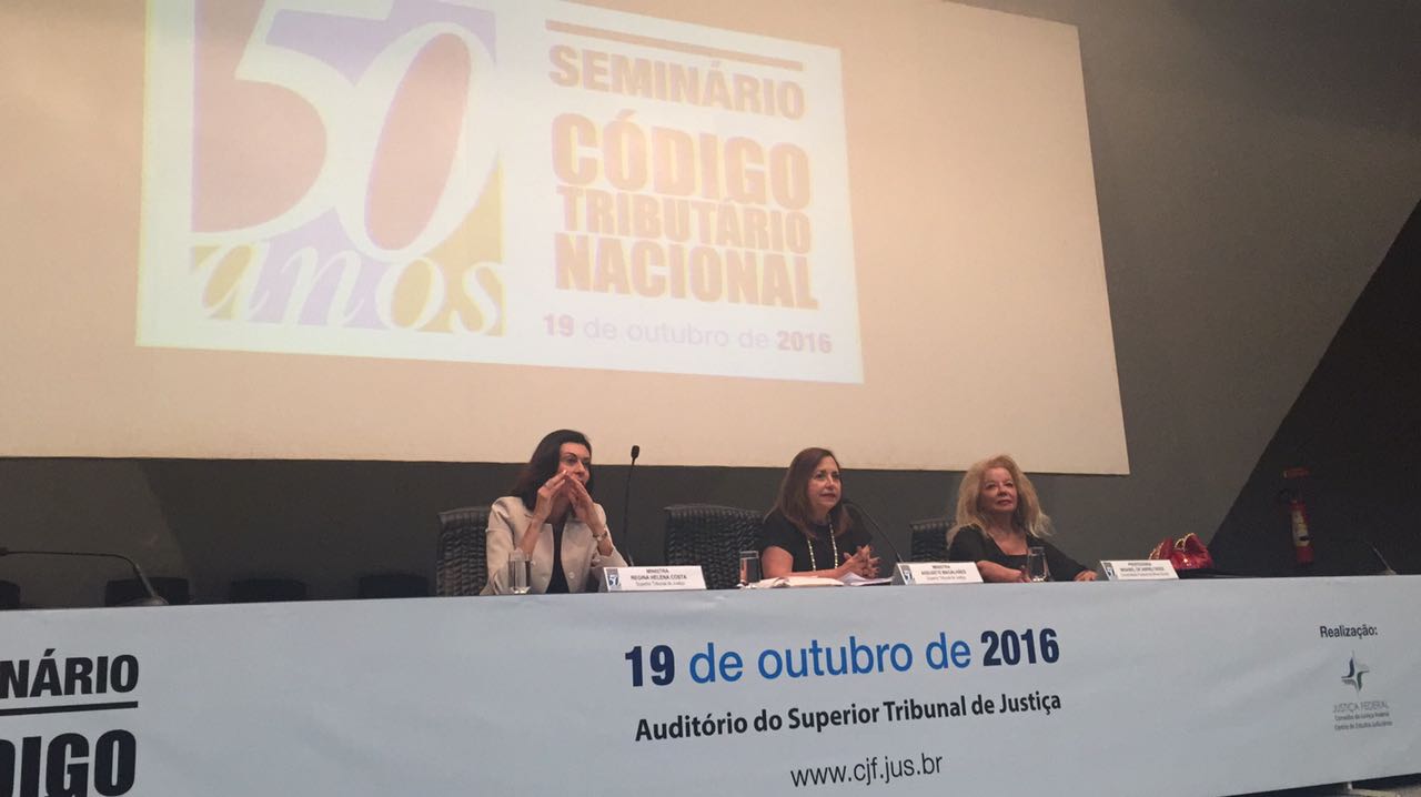 Misabel Derzi foi palestrante no segundo painel, intitulado “O Código Tributário Nacional e o Processo Judicial Tributário” e que teve como presidente de mesa a ministra Assusete Magalhães, do STJ, e como debatedora a também ministra do STJ Regina Helena Costa.