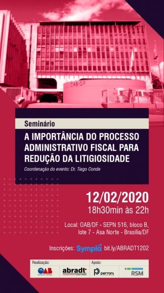 O SCMD estará presente no Seminário ‘A importância do processo administrativo fiscal para redução da litigiosidade’, a ser realizado em 12 de fevereiro, na sede da Ordem dos Advogados do Brasil Seccional Distrito Federal (OAB-DF).