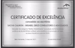 O Sacha Calmon – Misabel Derzi Consultores e Advogados recebeu o Certificado de Excelência da ArcelorMittal Brasil, na categoria “Melhor Atendimento” pelos serviços jurídicos prestados na área tributária no ano de 2020.