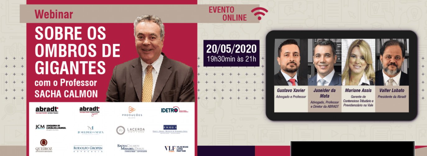 Sacha Calmon será o primeiro entrevistado da série e responderá perguntas do professor, sócio do SCMD e presidente da Abradt, Valter Lobato, a gerente de contencioso tributário e previdenciário da Vale, Mariane Assis, o advogado e professor Gustavo Xavier e o advogado, professor e diretor da Abradt, Jusselder da Mata.