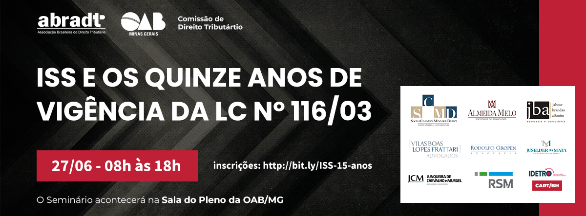 O SCMD terá participação de destaque no “Seminário ISS e os quinze anos de vigência da LC n° 116/03”, a ser realizado no dia 27 de junho, das 8 às 18h, na Sala do Pleno da OAB/MG, em Belo Horizonte.