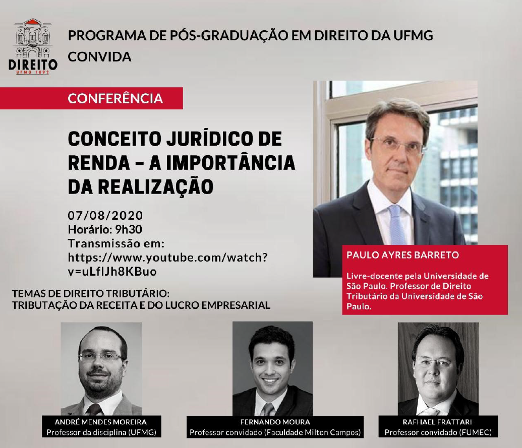 Os sócios do Sacha Calmon – Misabel Derzi Consultores e Advogados André Mendes Moreira e Fernando Daniel de Moura Fonseca irão participar da conferência ‘Conceito Jurídico de Renda – A Importância da Realização’, promovida pelo programa de Pós-Graduação da Universidade Federal de Minas Gerais (UFMG).
