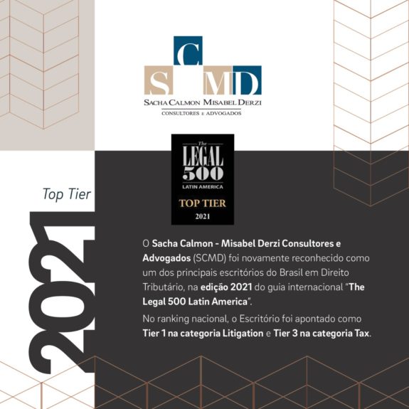 O Sacha Calmon – Misabel Derzi Consultores e Advogados (SCMD) foi novamente reconhecido como um dos principais escritórios do Brasil em Direito Tributário, na edição 2021 do guia internacional “The Legal 500 Latin America”.