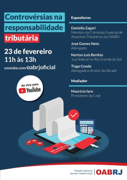 Representando o SCMD, o sócio-conselheiro Tiago Conde Teixeira será palestrante no webinar ‘Controvérsias na Responsabilidade Tributária’, promovido pela Comissão Especial de Assuntos Tributário da OAB do Rio de Janeiro.