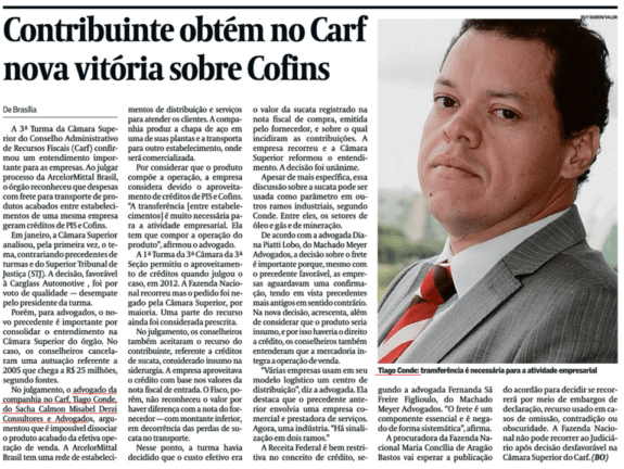 Valor Econômico: Tiago Conde comenta decisão do Carf sobre créditos de PIS e Cofins