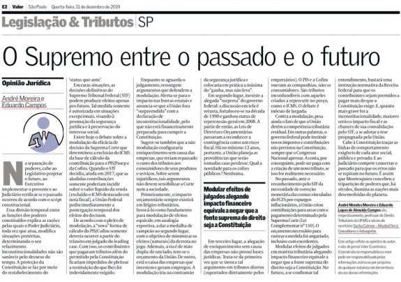 Valor publica artigo de André Mendes Moreira: O Supremo entre o passado e o futuro