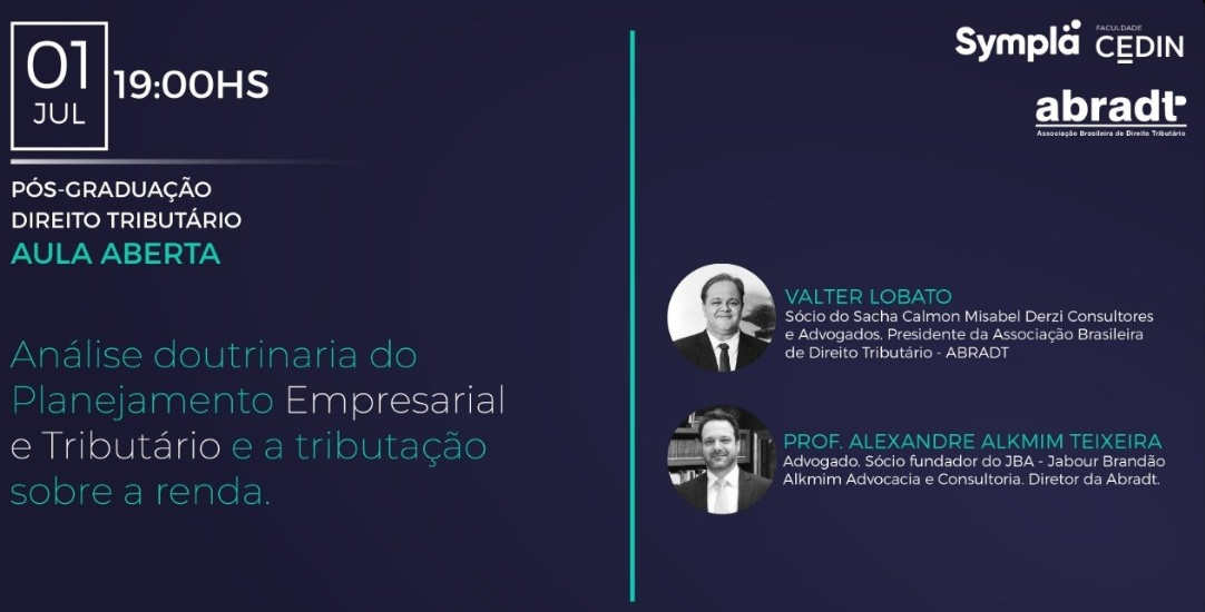 O evento on-line acontecerá das 19h às 22h30 desta quarta-feira (1/7), com o tema “Análise doutrinaria do Planejamento Empresarial e Tributário e a tributação sobre a renda”.