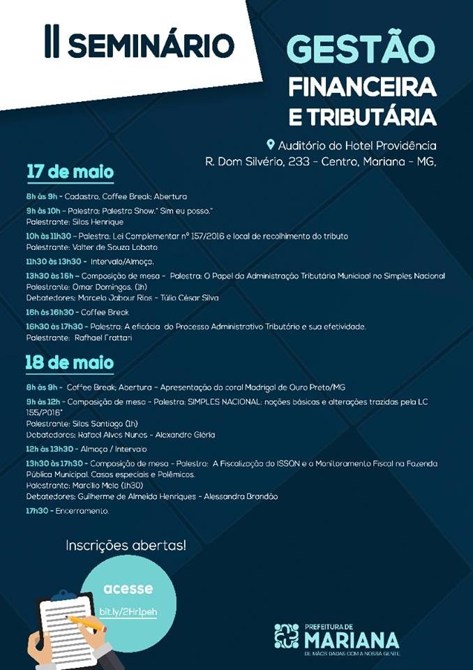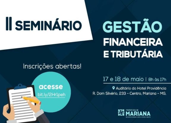 O sócio do SCMD Valter Lobato será palestrante no II Seminário de Gestão Financeira e Tributária de Mariana-MG, promovido pela Secretaria Municipal de Fazenda do município.
