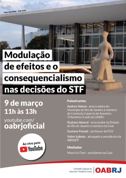 Sócio-conselheiro do Sacha Calmon – Misabel Derzi Consultores e Advogados, Valter Lobato será expositor no Webinar ‘Modulação de efeitos e o consequencialismo nas decisões do STF’, promovido pela Comissão Especial de Assuntos Tributários da OAB-RJ.